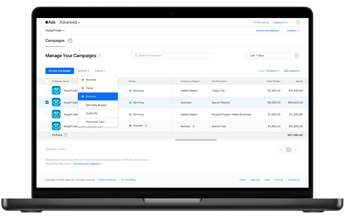 Note that removing a campaign is a permanent action. Once removed, it can’t be restored or modified.