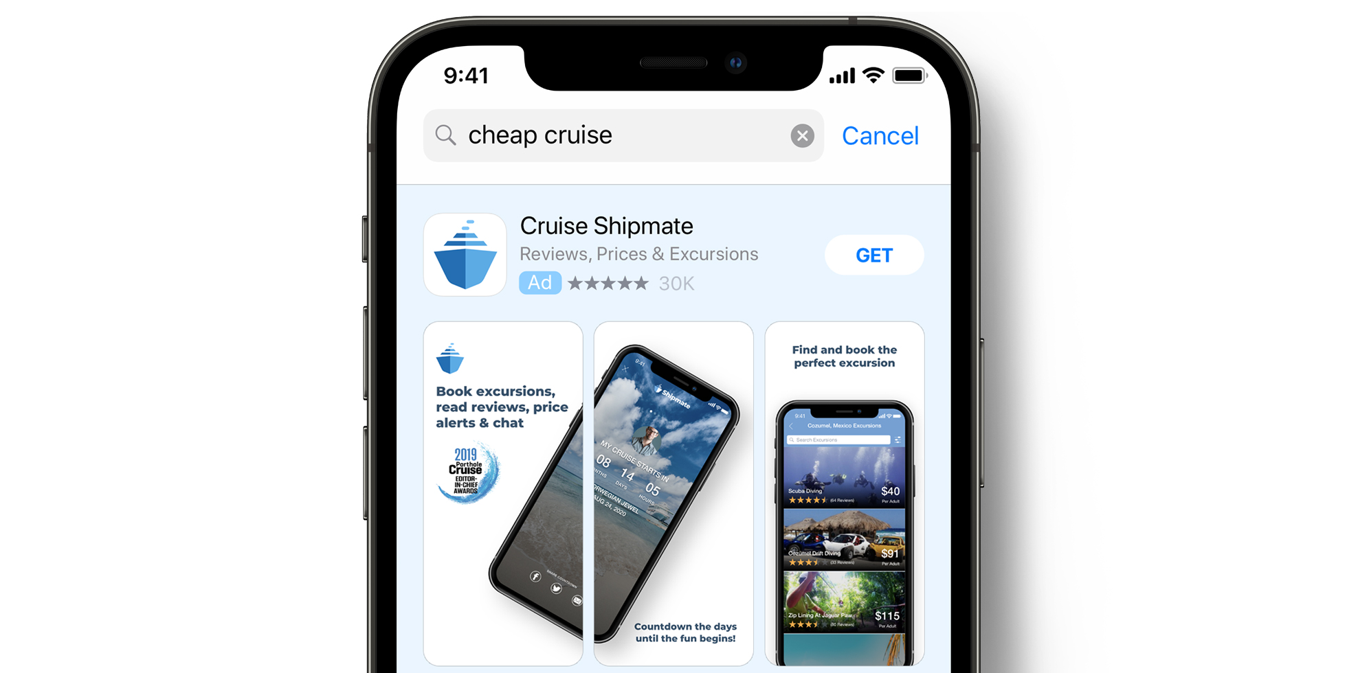 With a small starting budget and no additional staff to help, Jirout set up an Apple Ads campaign and started tracking results. “I was up and running with Apple Ads in minutes by simply selecting Search Match and adding a few keywords,” Jirout explains. To stay afloat, Cruise Shipmate has to attract cruise goers who engage with the app before, during, and even after their cruise. Engaging with these users enables Cruise Shipmate to generate revenue through in-app purchases, such as excursions and other trip incidentals. “For us, the value curve per user is just as important as the number of downloads,” Jirout says. “Acquisition costs with Apple Ads are less than a third of any other channel, and when I saw our performance numbers after trying out the $100 free credit, Apple Ads was a no-brainer.”
