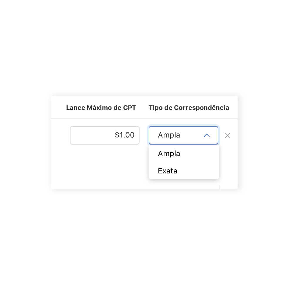Geralmente, lances mais moderados devem ser colocados em palavras-chave de correspondência ampla e grupos de anúncios do Search Match. Eles impulsionam a descoberta e podem ajudar você a explorar as tendências de busca, os picos e os termos de menor volume, mas podem não gerar alta eficiência, como ocorre com os termos de correspondência exata. Para um desempenho ideal, a maior parte do tráfego deve vir da correspondência exata.