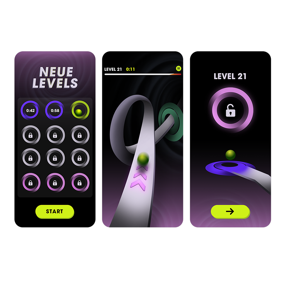 Wenn du beispielsweise eine nutzerdefinierte Anzeige für ein Labyrinthspiel geschaltet hast, kannst du neue Level präsentieren, um die Aufmerksamkeit interessierter Kund:innen zu erregen.