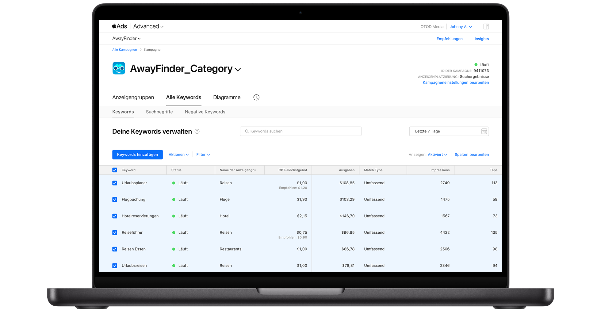 Überprüfe regelmäßig die Keywordleistung und behalte den Überblick darüber, welche Begriffe die besten Ergebnisse liefern. Sorge dafür, dass dir ein ausreichendes Budget zur Verfügung steht, um das Potenzial deiner leistungsstarken Keywords zu maximieren. Erhöhe ggf. Gebote oder weise das Budget für bestimmte Keywords neu zu.
