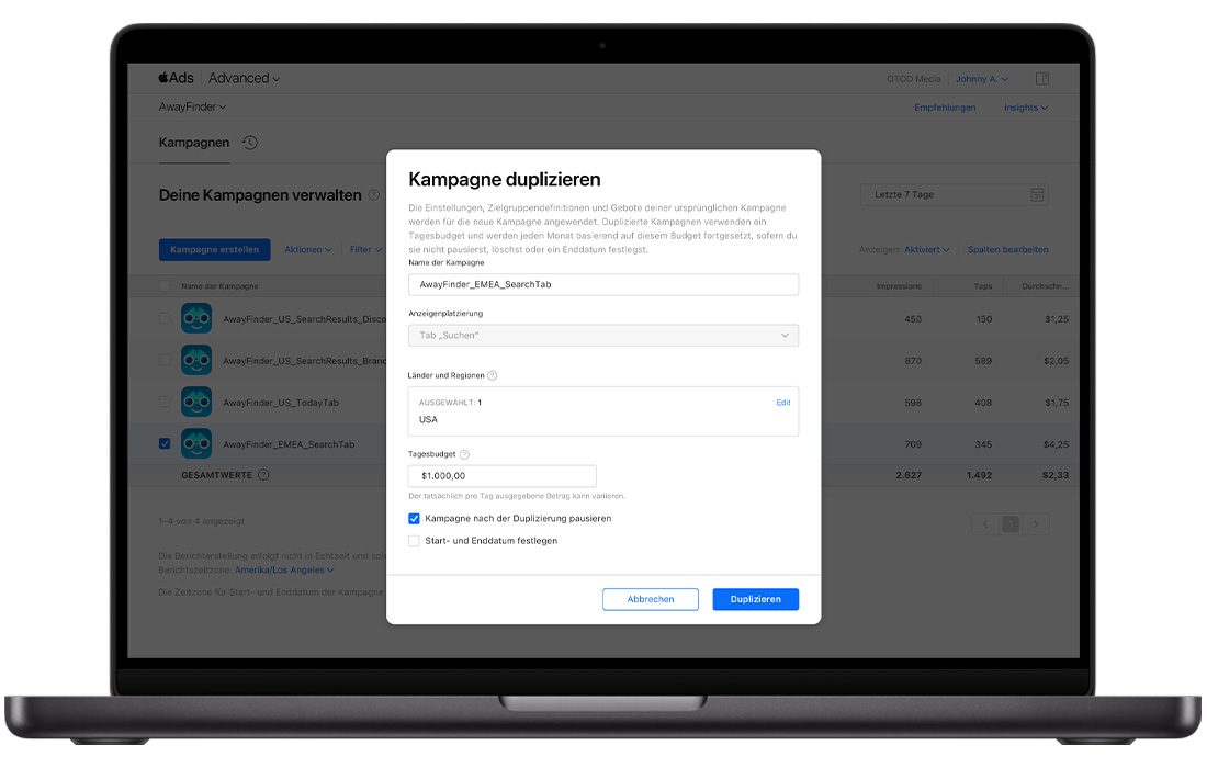 Spare Zeit und beschleunige den Start von Apple Ads Kampagnen