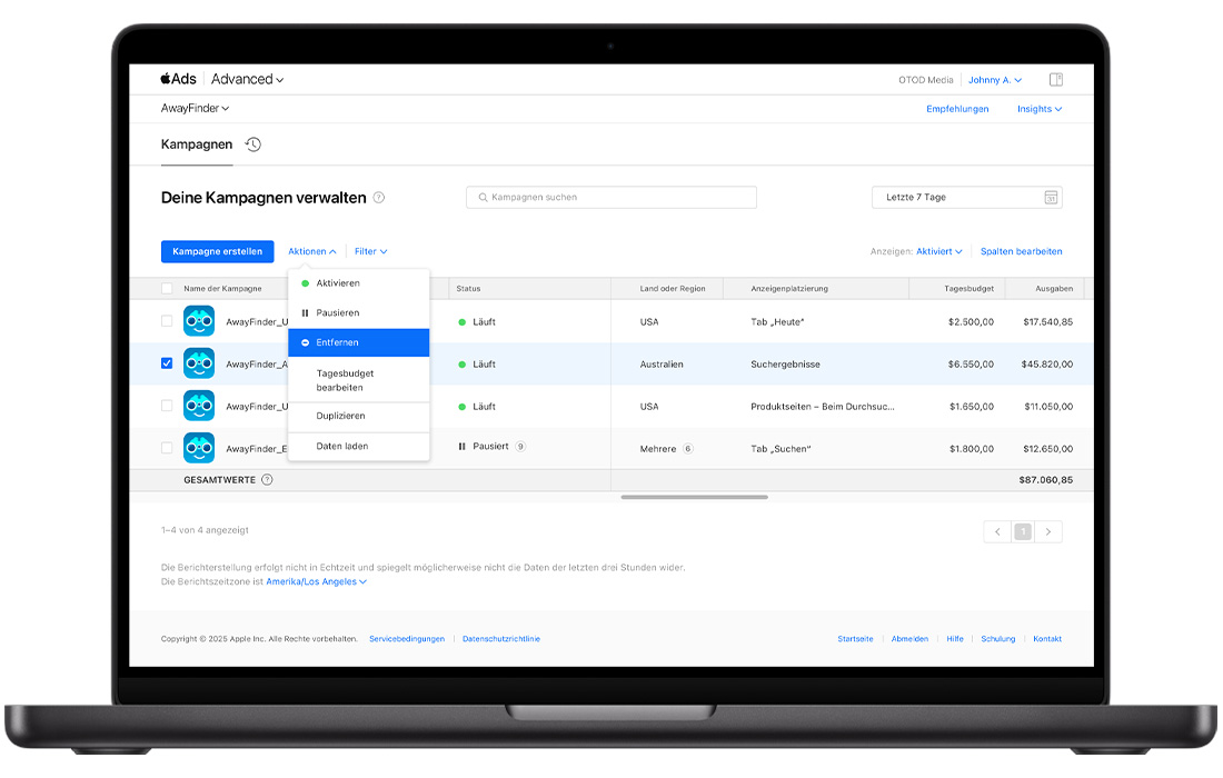 Apple Ads-Kampagnen pausieren oder aktivieren