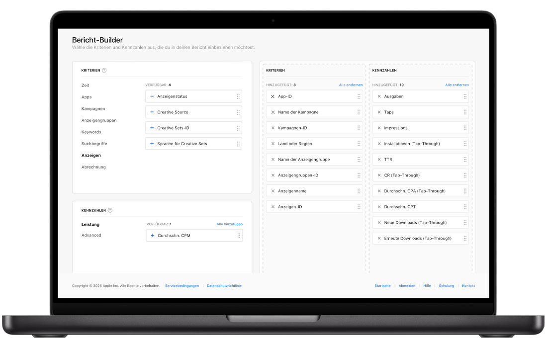 Einfacher Zugriff auf Apple Ads Leistungsdaten mit flexiblen Berichtsoptionen
