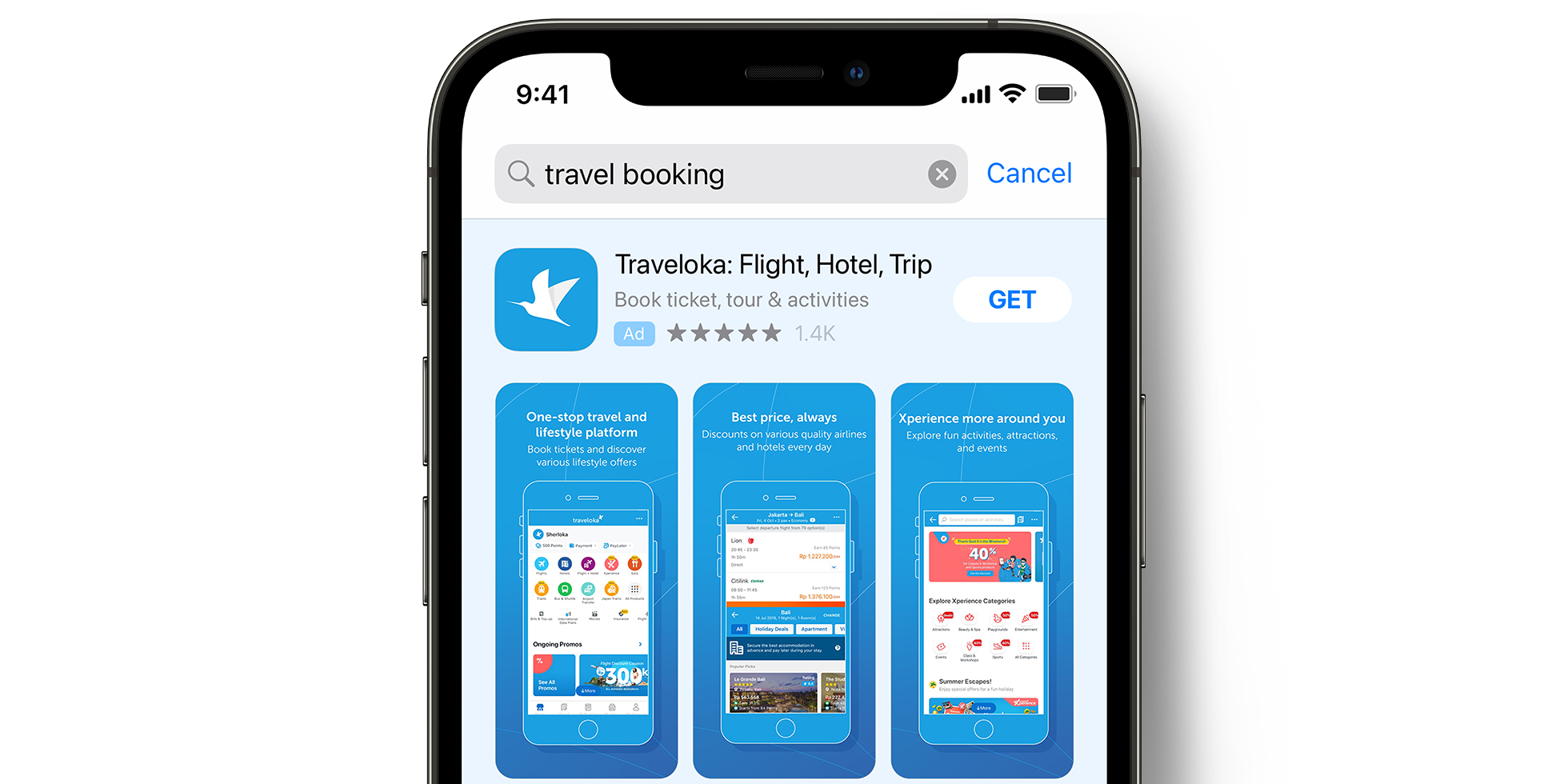Mithilfe von Empfehlungen von Apple Ads und nutzerdefinierten Berichten überwachte das Team von Traveloka die Kampagnenleistung auf Keywordebene. Es ermittelte das Keyword-Suchvolumen und passte die Gebote entsprechend der Leistung an. „Es ist sehr praktisch, die Leistung von Apple Ads regelmäßig zu überwachen und sich auf Keywords mit hohem Suchvolumen einzustellen“, erklärt Tjahjono. „Wir konnten hohe Tap-Through-Raten und Conversions erzielen, indem wir die Keywordabdeckung für Suchbegriffe erhöht haben, die für unser Unternehmen am relevantesten sind.“