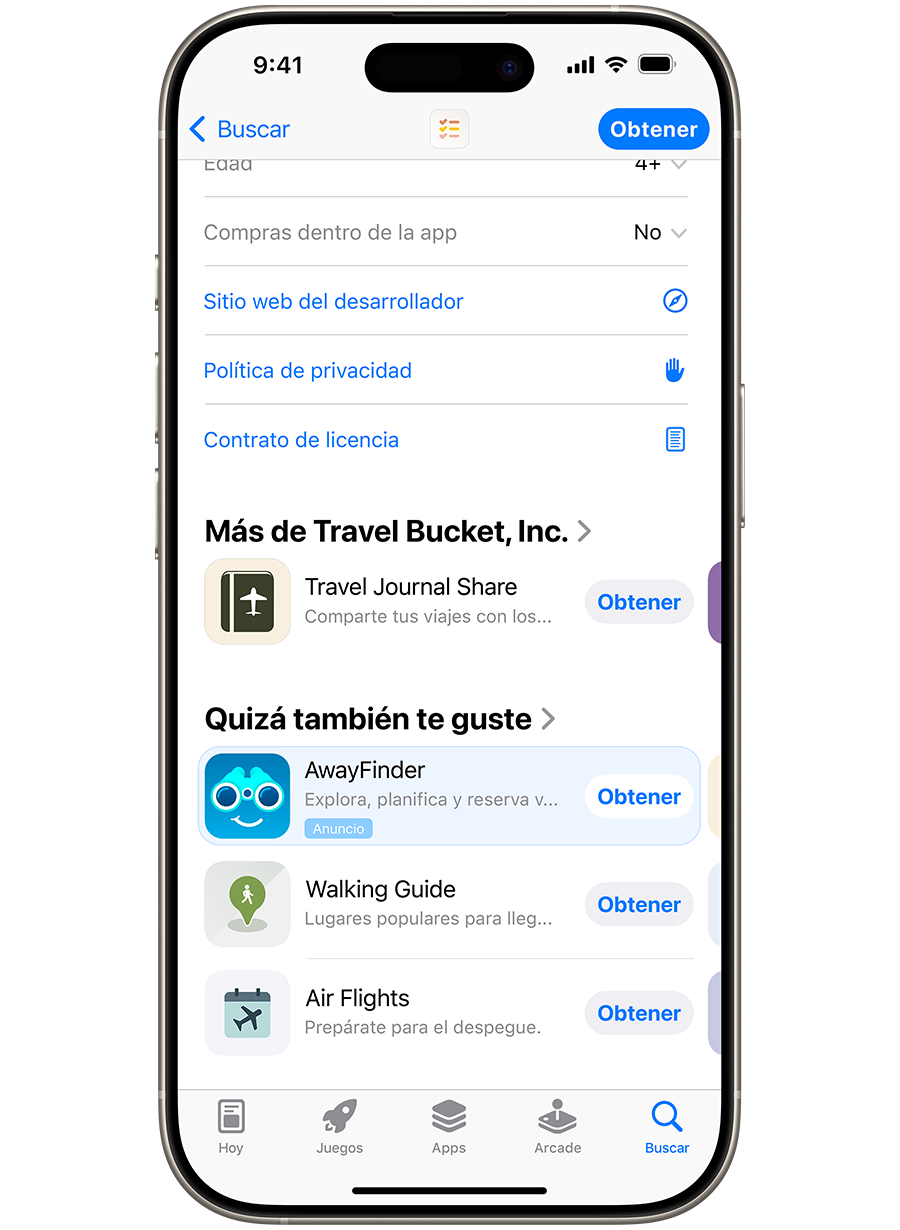 No dejes escapar a los clientes que están buscando apps de forma activa. Pueden encontrar tu app después de llegar a una página de producto a través un enlace externo, o desde un artículo o una búsqueda en el App Store. Los anuncios de las páginas de producto pueden aumentar el rendimiento de la campaña y complementar tu estrategia de ubicación de anuncios.