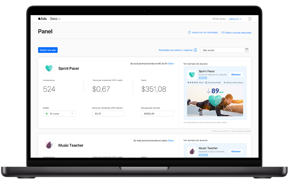 Comprende tus anuncios del panel de Apple