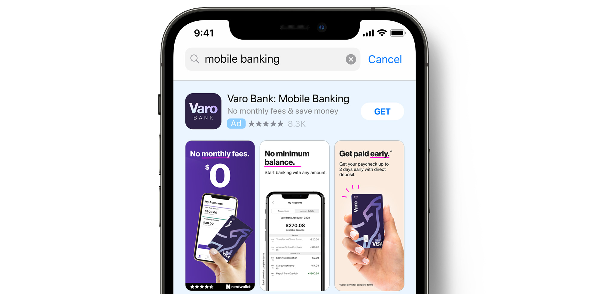 Para maximizar la relevancia de los anuncios, el equipo de Varo Bank aprovechó las variantes de anuncios, alineando las palabras clave con mejor rendimiento con diferentes vistas previas o vídeos de la app de su página de producto en el App Store. Crearon variantes de anuncios en las que se destacaban las ventajas más populares de la app, como la ausencia de comisiones por descubierto o el ingreso de las nóminas domiciliadas hasta dos días antes.