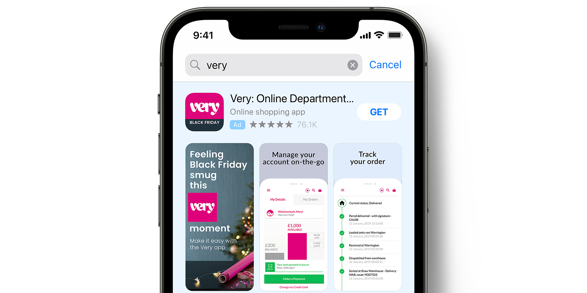 En vísperas de la temporada de compras clave de fin de año, el equipo de Very maximizó la relevancia de los anuncios probando una creatividad similar a la de los anuncios del Black Friday y de las vacaciones de invierno. Renovaron también las capturas de pantalla y el icono de la app para reflejar la temporada festiva.