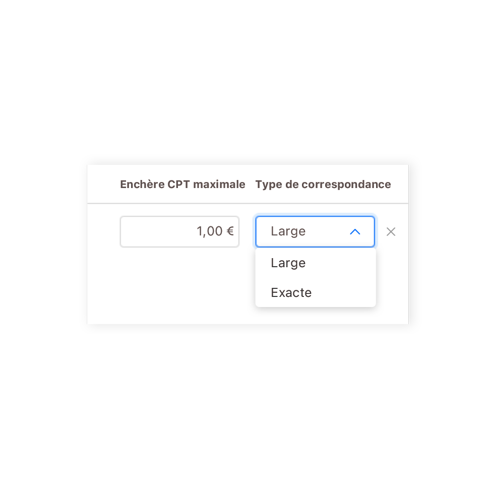 Conservez des mots-clés en requête exacte et en requête large dans des groupes d’annonces ou des campagnes distincts afin de pouvoir gérer individuellement vos stratégies d’enchères.
