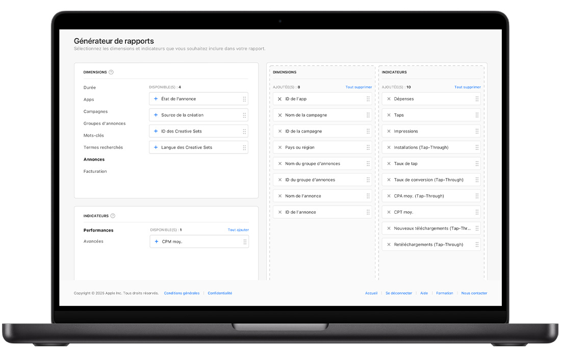 Accédez facilement aux données de performances d’Apple Ads grâce à la souplesse des options de création de rapports