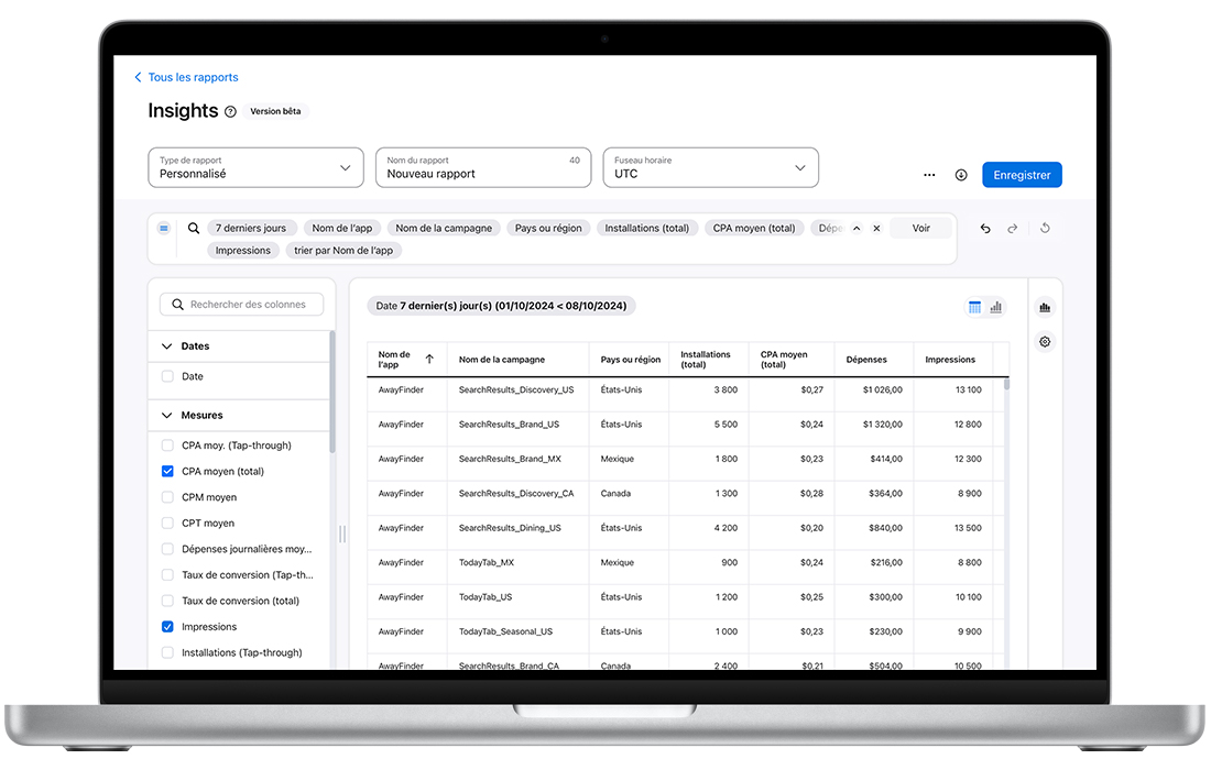 Prenez des décisions éclairées concernant vos campagnes Apple Ads grâce à des outils d’analyse performants