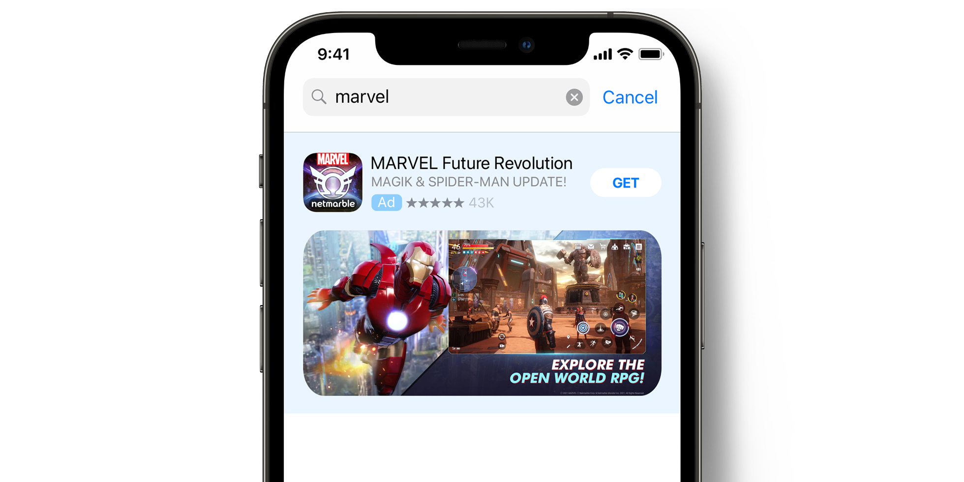 Pour accroître la notoriété de la marque et les téléchargements auprès d’une audience plus large, l’équipe de Netmarble a également opté pour des annonces dans l’onglet Rechercher de l’App Store. Ces annonces s’affichent en haut de la liste des apps suggérées. Cette approche lui a permis de renforcer son exposition et de susciter l’intérêt des utilisateurs et utilisatrices avant même l’affinement de leur recherche. Au cours de la première semaine suivant le lancement, les revenus par installation ont dépassé les attentes. Jamais Netmarble n’avait obtenu de tels résultats avec Apple Ads.
