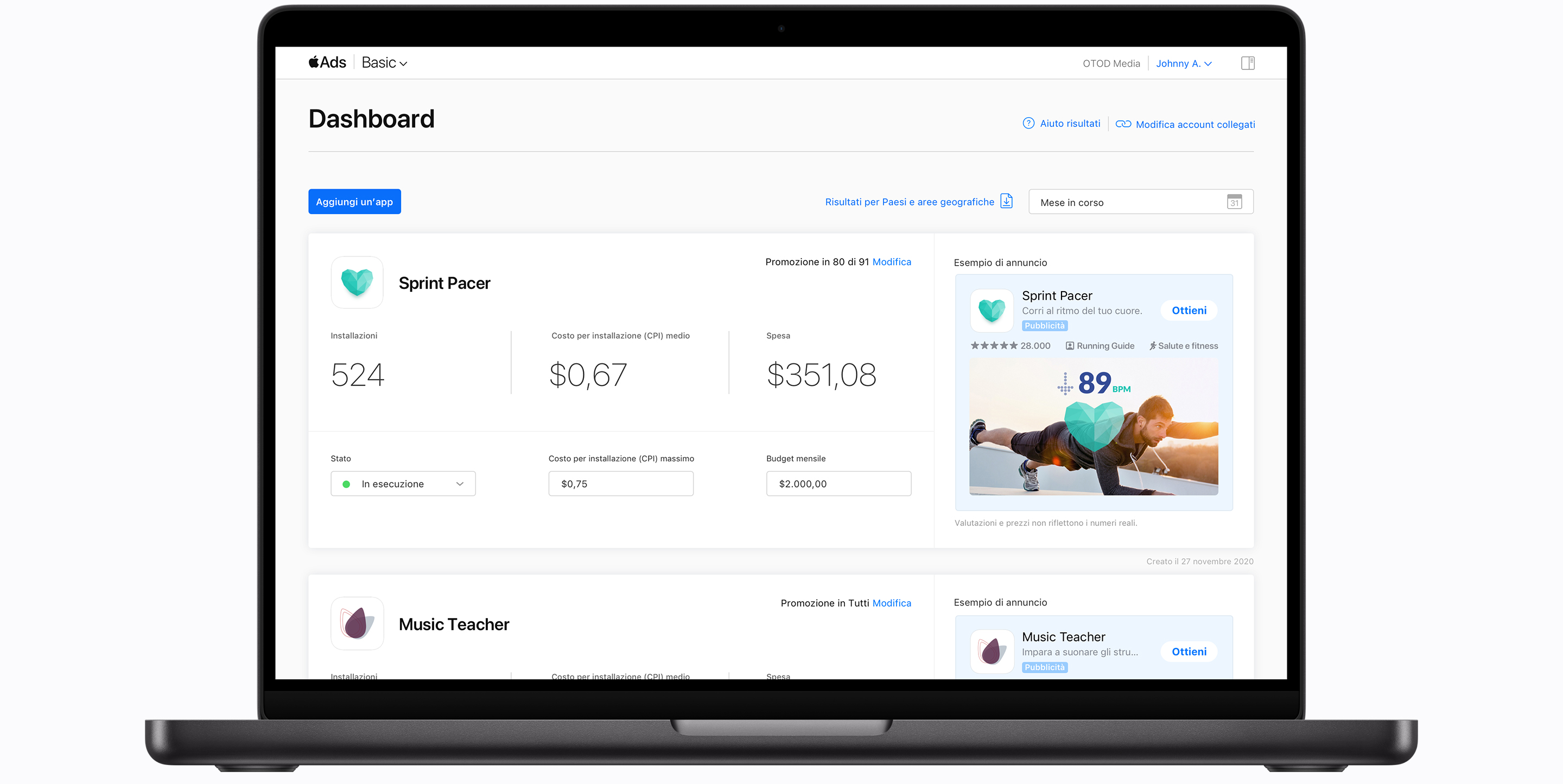 Usa gli strumenti di Apple Ads Advanced e le tue competenze di marketing per pubblicare campagne in più posizionamenti sull’App Store.