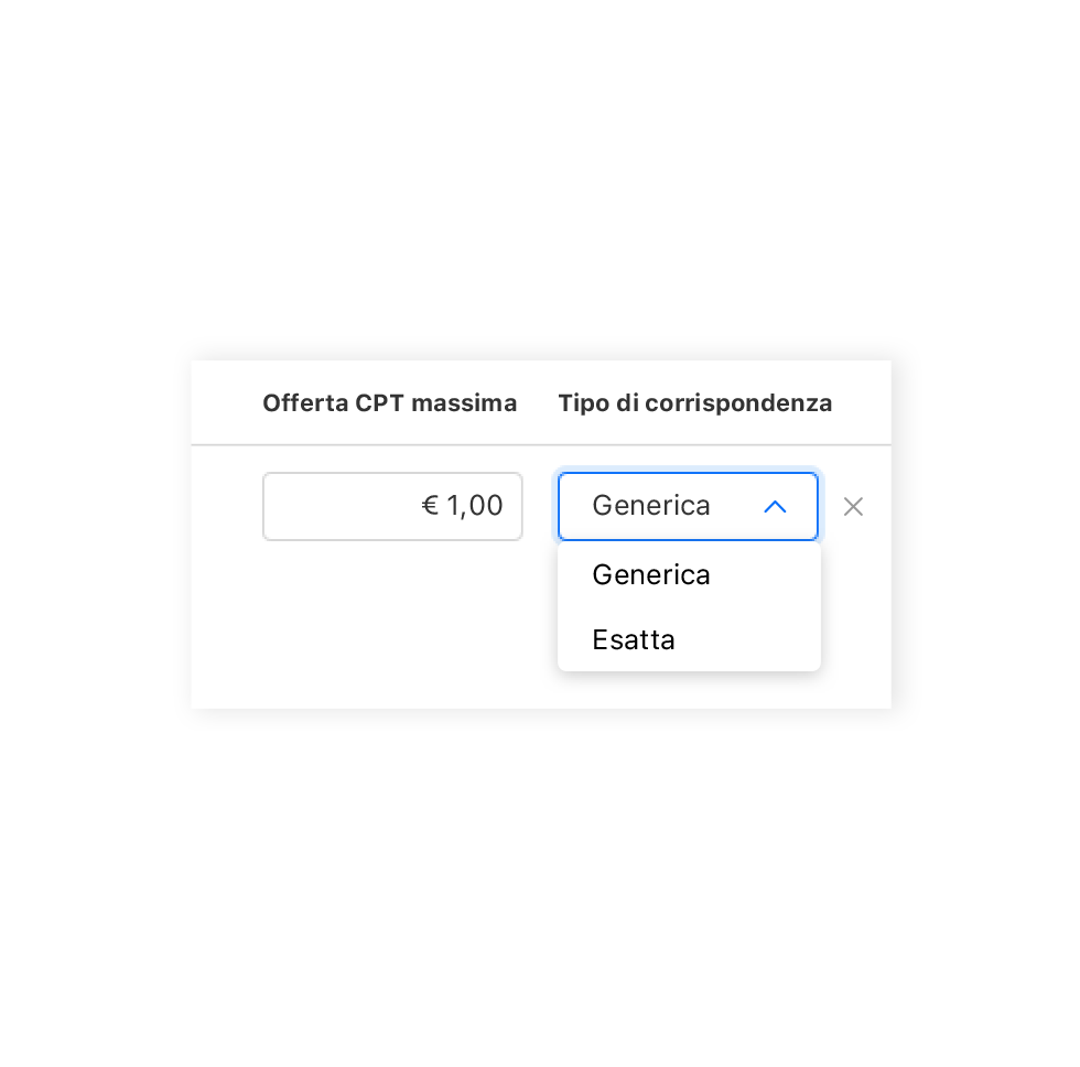 Imposta le offerte CPT massime in base al tipo di corrispondenza.