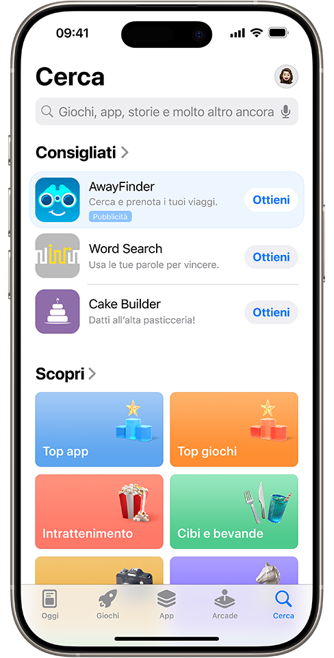 Gli annunci nel pannello Cerca dell’App Store ti permettono di far conoscere la tua app e aumentarne i download tramite la promozione in cima all’elenco delle app consigliate. Oltre il 70 per cento* delle persone che visitano l’App Store usa la ricerca per scoprire le app. Con gli annunci per il pannello Cerca puoi catturare l’attenzione di queste persone persino prima che eseguano una ricerca.