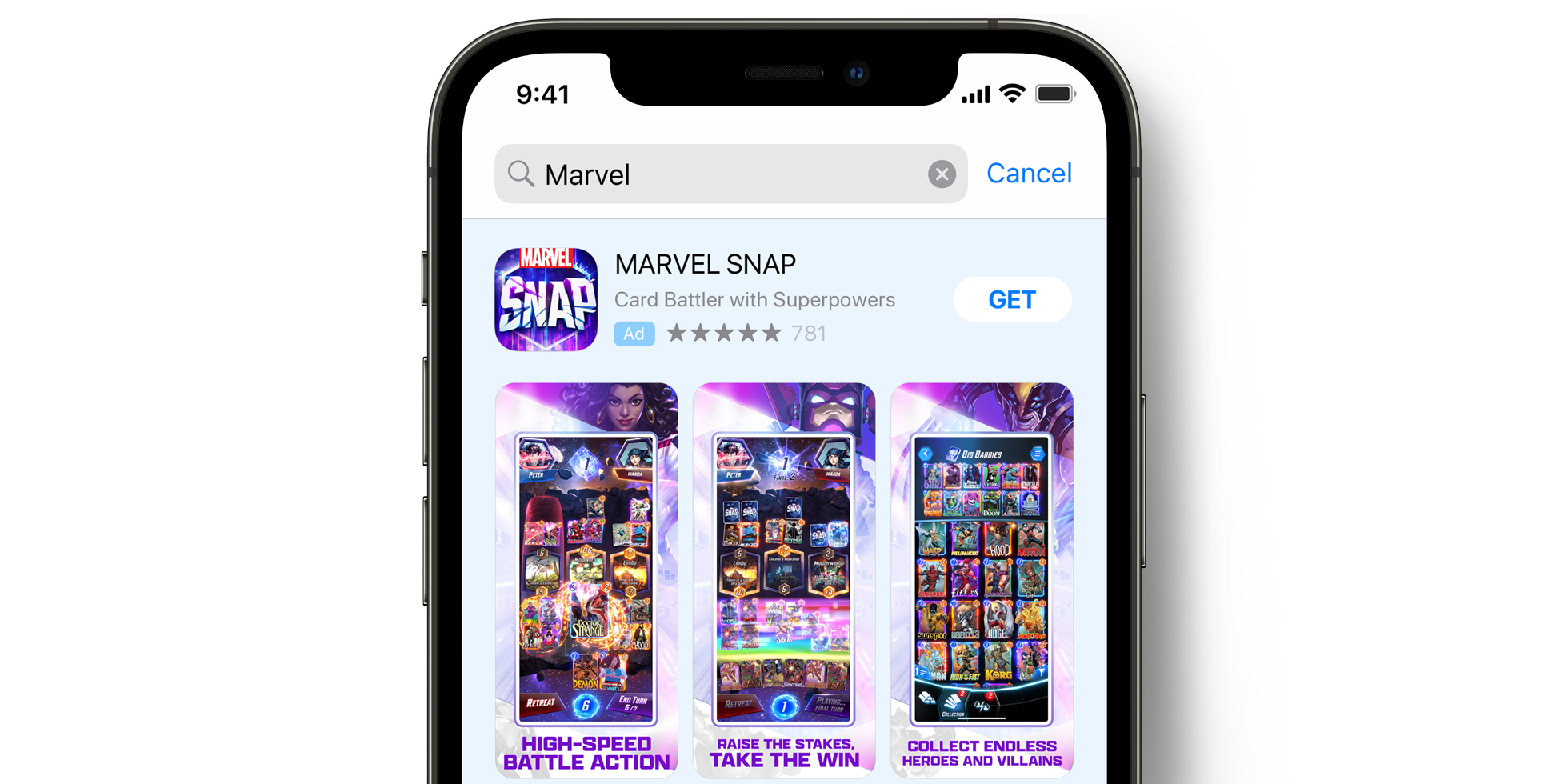 Con un annuncio per il pannello Oggi, il team di Nuverse ha messo MARVEL SNAP in evidenza nella prima pagina dell’App Store, facendo in modo che sia uno dei primi contenuti che le persone vedono quando iniziano la loro visita all’App Store. Il team ha creato questo posizionamento con contenuti creativi dell’annuncio basati sulle pagine prodotto personalizzate configurate in App Store Connect, mettendo in risalto i nuovi aggiornamenti delle app, il gameplay stagionale e i personaggi Marvel più famosi.