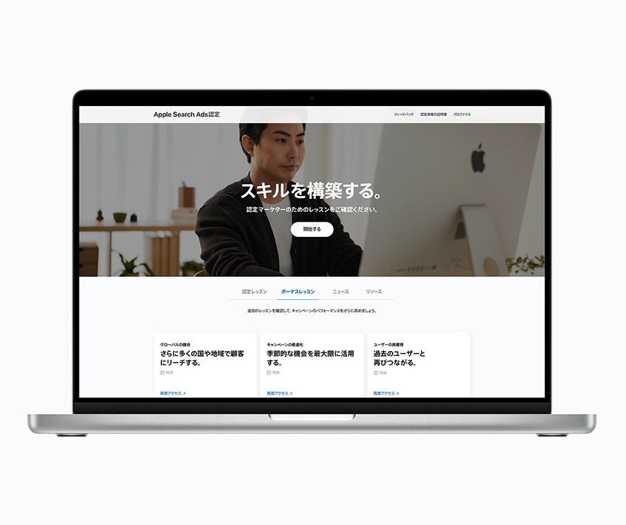 厳選されたApple Search Ads認定コースを受講すれば、専門知識がすぐに身に付き、広告パフォーマンスを高めることができます。