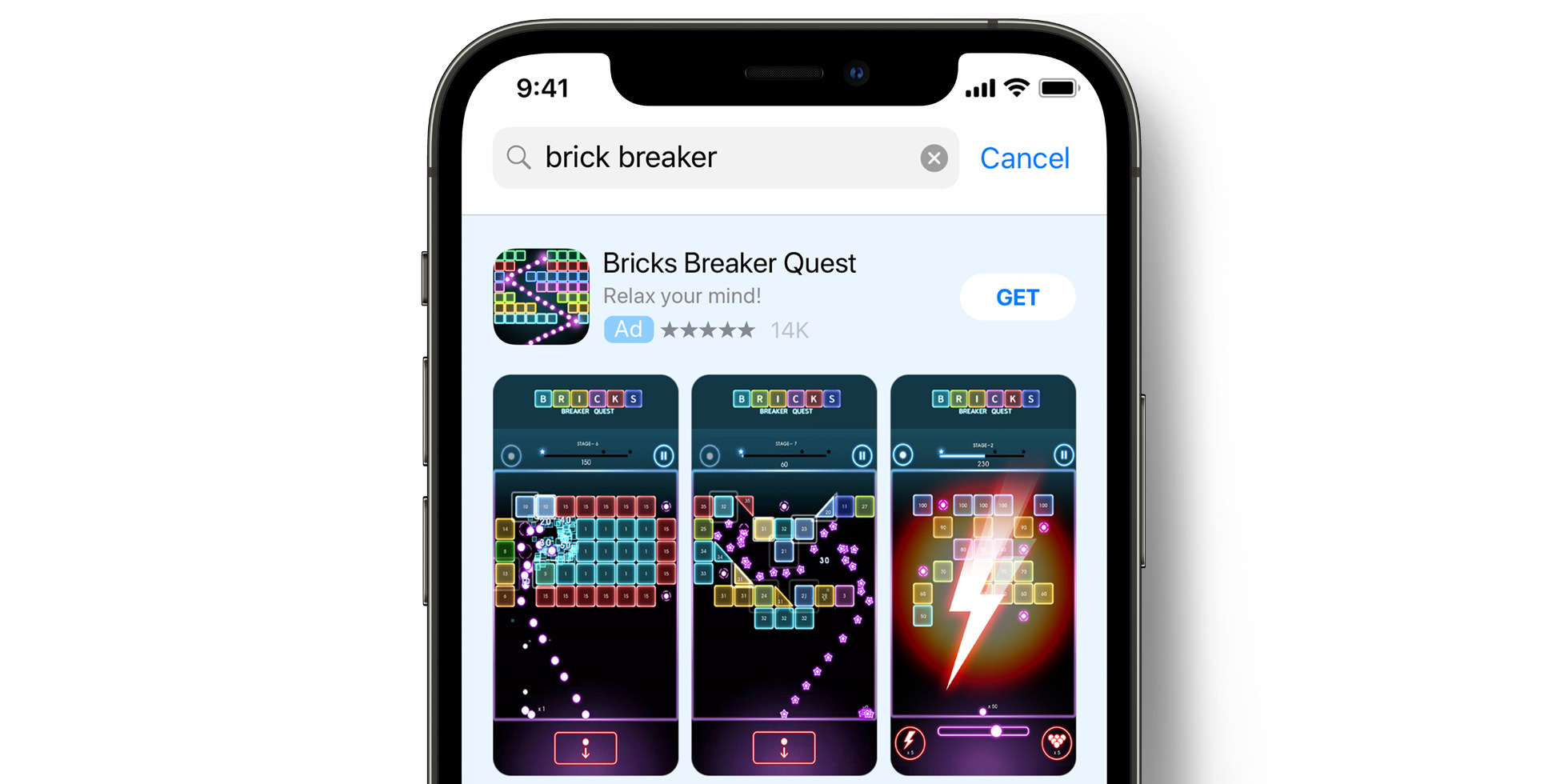 iOSユーザーの獲得数を最大限に高めるため、Mobirixはアプリケーションをローンチする59の国と地域すべてでApple Adsだけに投資しました。これにより、新しい市場を迅速にテストしてパフォーマンスを分析し、戦略をローカライズする方法を学習して最適化を図り、効率を上げることができました。この重点的な投資は、iOSでのBricks Breaker Questの収益の50%がApple Adsによって得られるという成果をもたらしました。