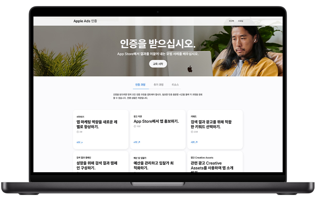 Apple Ads 관련 전문 지식을 빠르게 갖출 수 있습니다.