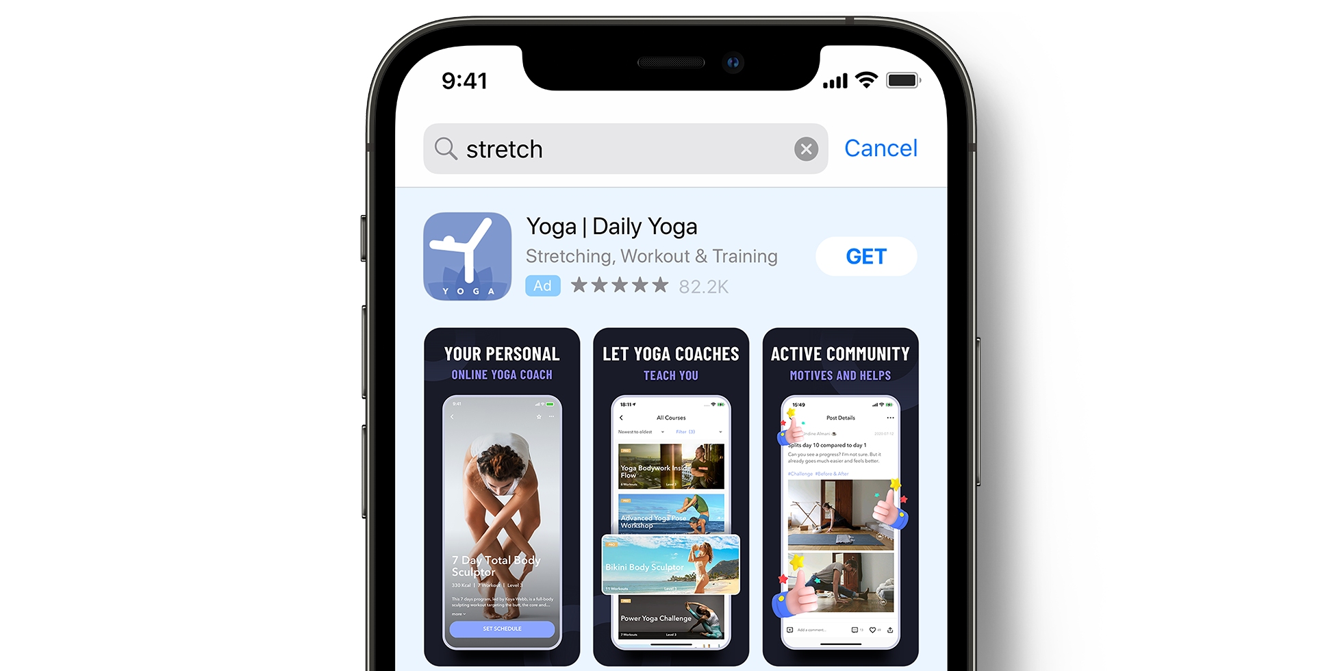 또한 Apple Ads는 키워드 및 지역별 인사이트를 제공했으며, Daily Yoga 제품 팀은 이를 활용하여 콘텐츠를 생성하고 앱 내 이벤트 및 기타 채널 전체에서 마케팅을 수행했습니다. Apple Ads를 통해 확보한 데이터는 App Store 제품 페이지를 최적화하는 데에도 사용되어, 추가 자연 검색 성장을 달성하는 데 도움이 되었습니다. Wang은 "Apple Ads를 통한 사용자 전환의 품질은 다른 광고 플랫폼의 품질보다 더 높으며 자연 검색 다운로드에 가장 가깝습니다. 따라서 전반적으로 오디언스 증가뿐만 아니라 ROI 향상에도 도움이 됩니다."라고 말합니다.
