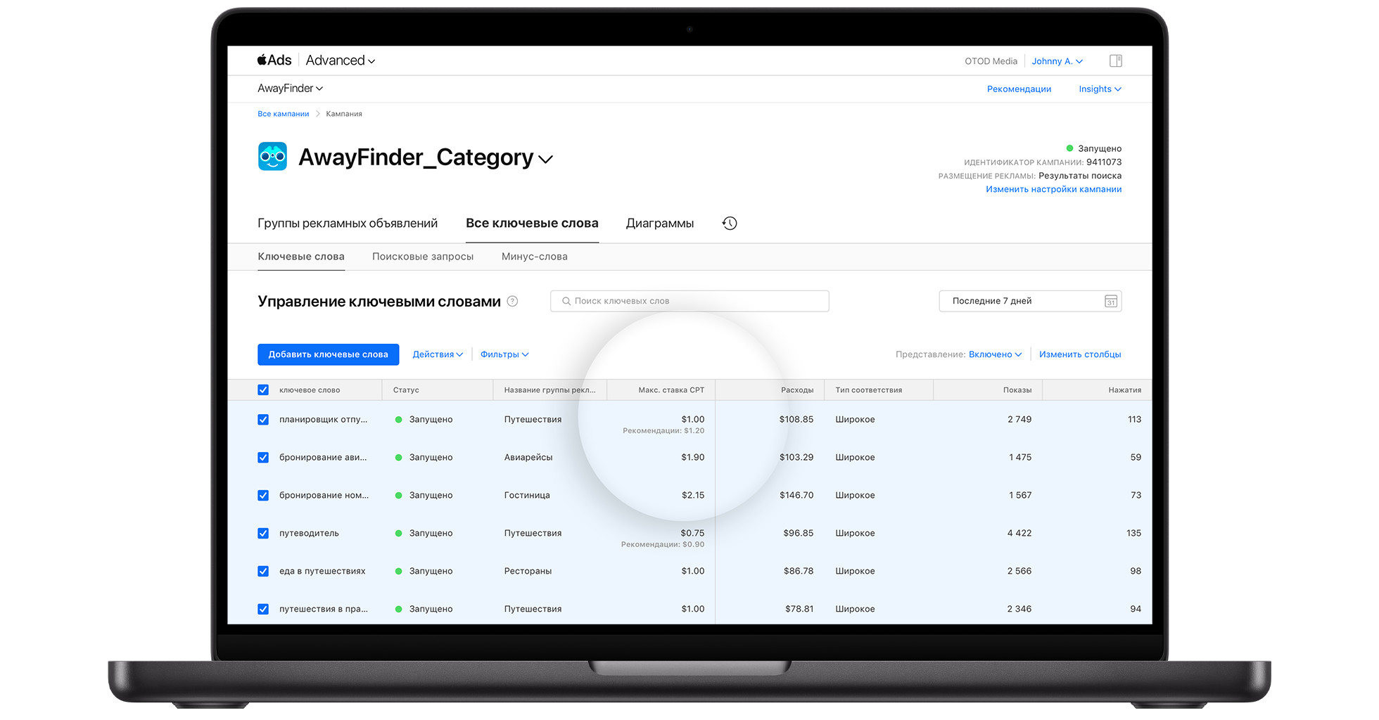 Мы постоянно оптимизируем нашу стратегию назначения ставок, увеличивая вложения в наиболее эффективные поисковые запросы, чтобы обеспечить максимальную конкурентоспособность на каждом рынке.