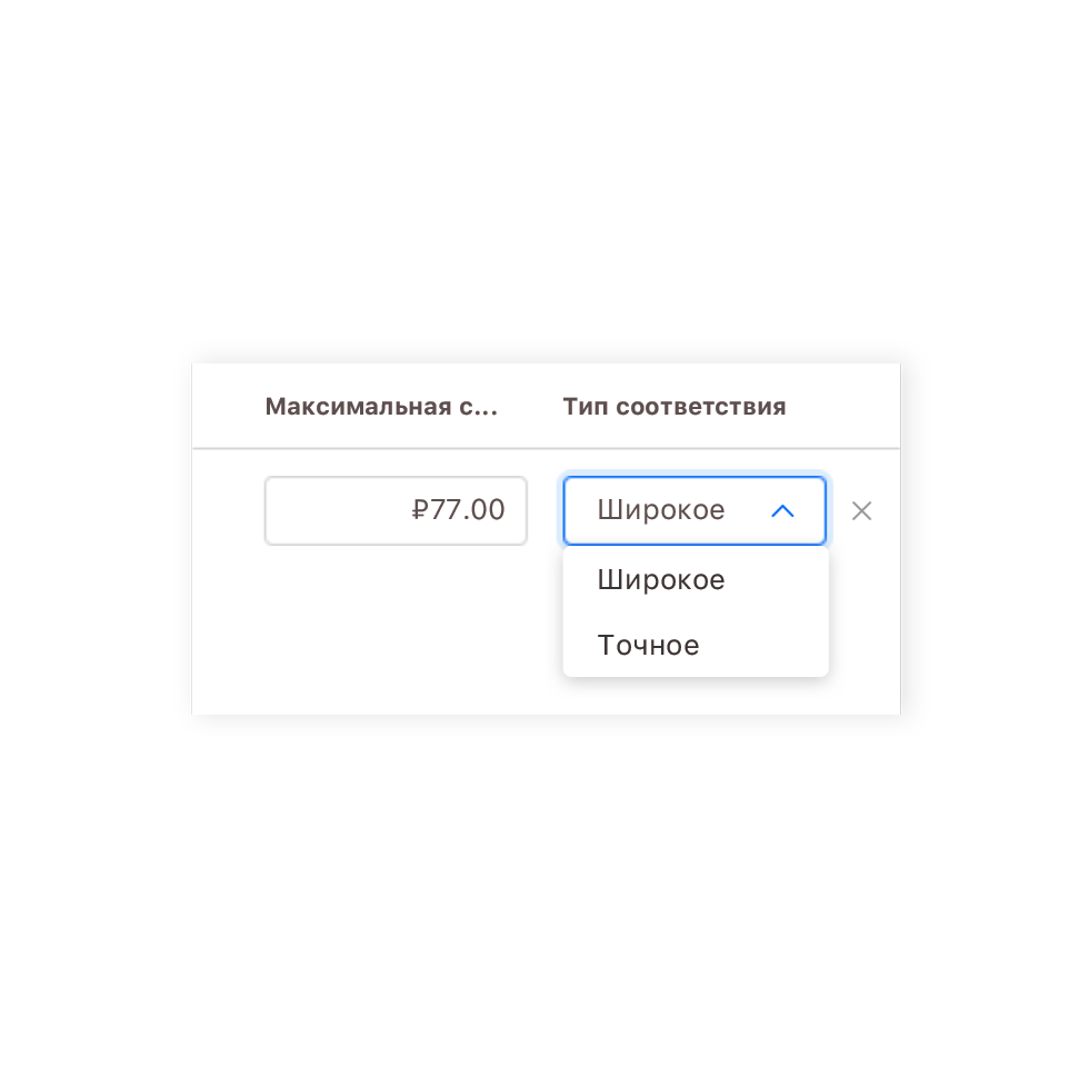 Устанавливайте максимальные ставки CPT с учетом типа соответствия.