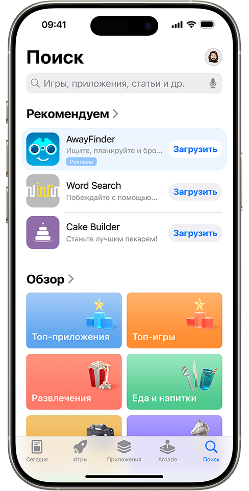 Благодаря рекламе на вкладке «Поиск» в App Store вы можете повысить заметность и увеличить количество загрузок вашего приложения, продвигая его в верхней части списка рекомендуемых приложений. Более 70 процентов* посетителей App Store находят приложения через поиск. С помощью такой рекламы вы можете привлечь внимание этих пользователей ещё до того, как они начнут поиск.