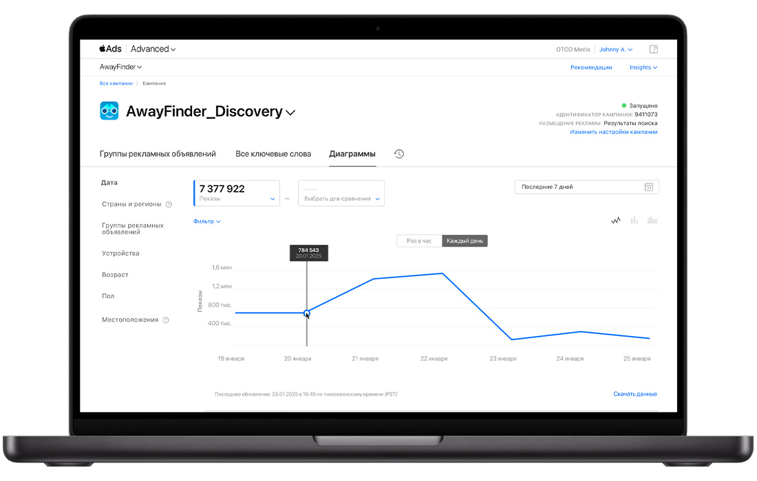 Если вы не меняли настройки аудитории в группе рекламных объявлений или кампании, в разделах возраста, пола или местоположения в представлении отчета может отображаться категория под названием «Пользователь скрыт». Это означает, что некоторые пользователи, увидевшие ваше рекламное объявление, не разрешили Apple Ads использовать сведения о них для таргетинга рекламы или отключили геолокацию на своем устройстве.