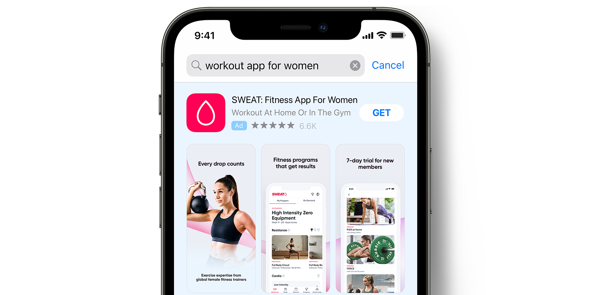 «Благодаря Apple Ads мы всегда знаем, что наша целевая аудитория ищет на своём родном языке, и быстро определяем потенциальные объёмы поиска на новых рынках», — делится Тайсен Коул, руководитель отдела перформанс-маркетинга, Sweat.