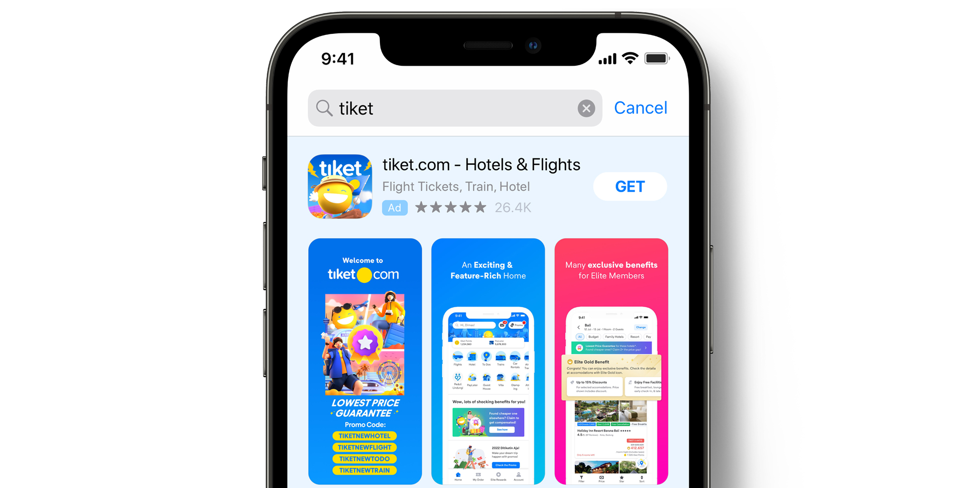 Для более эффективного вовлечения различных групп пользователей команда tiket.com создала варианты рекламы на основе настраиваемых страниц приложения из App Store Connect. Настраиваемая реклама была более релевантна конкретным потребностям пользователей, поскольку креатив был согласован с конкретными темами ключевых слов, связанными с различными продуктами (авиабилеты, отели, билеты на поезд, развлечения). Так, для рекламы, которая отображалась у пользователей, ищущих билеты на авиарейсы, использовали картинки с самолётами, а для вариантов рекламы, ориентированных на бронирование отелей, использовали картинки с изображениями гостиничных номеров.